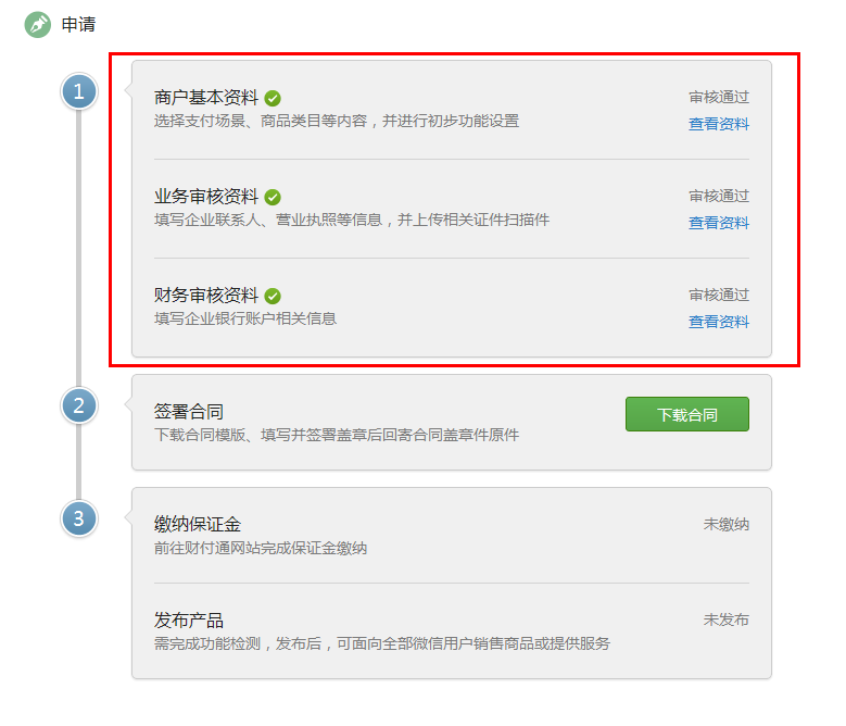 商户功能申请流程第一步完成后(完整提交相关资料并审核通过),便会收到邮件(包括商户号及两个密钥)