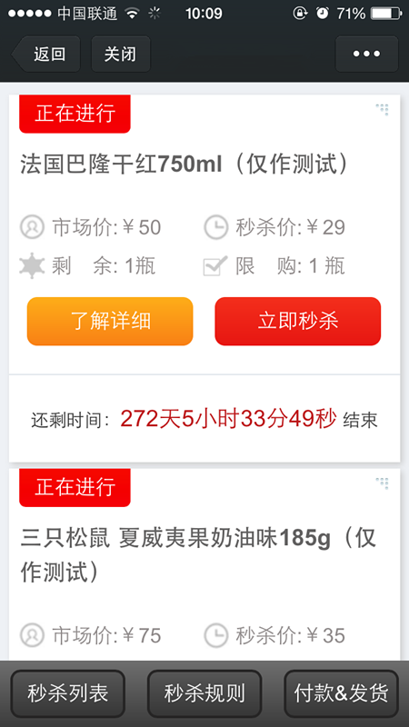 微秒杀跟商城和团购差不多,不过有一个地方不一样是:加入“时间倒数”的理念,给消费者增加了一个购物迫切感,为商家促销增添助力。