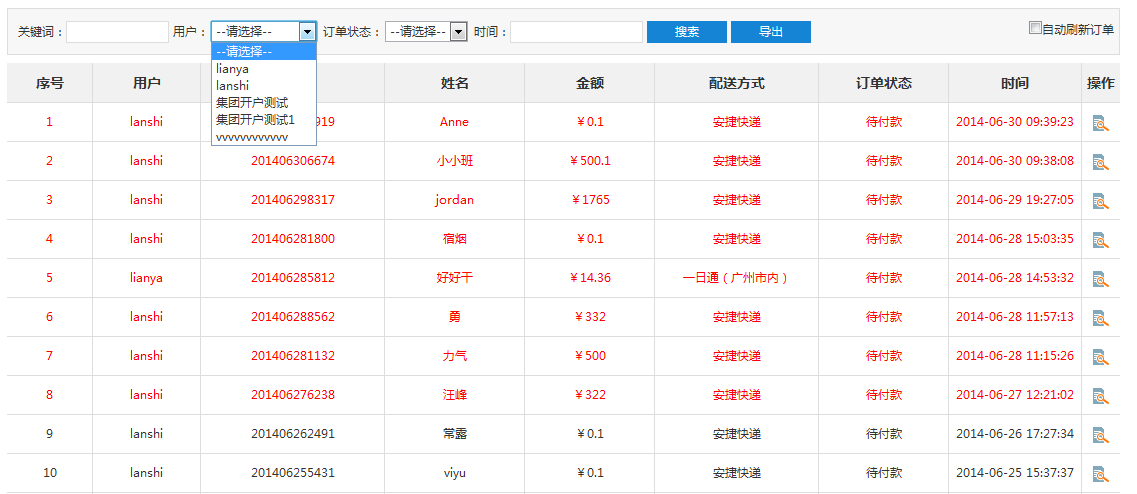 微商城-查看旗下所有帐号的订单,并可修改订单记录,多条件筛选订单和导出订单
